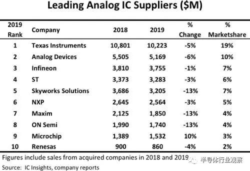 回望美国历史,一代又一代的政客、分析机构以及新闻工作者无不在推动半导体业的发展。里根时代:“美国半导体工业的健康和活力对美国未来的竞争力至关重要。我们不能让它受到危害。——罗纳德·里根(1987)克林顿时代:“美国半导体制造商的衰落……美国主导科学产业的日子可能已经不多了……下游电子系统产业一连串下滑的第一张多米诺骨牌。”——行业评估(1999)奥巴马时代:“半导体创新正在放缓……中国协同努力,利用政府引导的超过1000亿美元的产业政策,以有利于自己的方式重塑市场,这威胁到了美国产业的竞争力。”——总统科学技术顾问委员会(2016)当今:美国需要雄心勃勃地投资半导体研究....(或)面临失去创新优势和全球竞争技术领先地位的风险。——半导体行业协会2019年报告美国在半导体业务的制高点上拥有牢牢的控制权,而半导体业务则主导着整个行业。首先来看全球整体的半导体厂商排名情况,前十中有5家都是美国的企业。英特尔当然是美国最大的半导体生产商,也是世界上最大的微芯片制造商之一。美光排在第四,高通第五,德州仪器第七,英伟达第十。